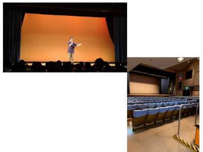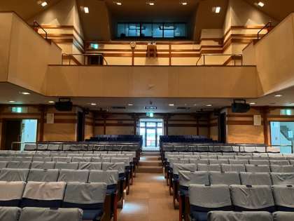 きれいな会館ですね。ここで夕食を食べて、お楽しみのレクがあります。