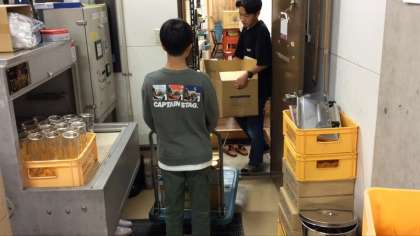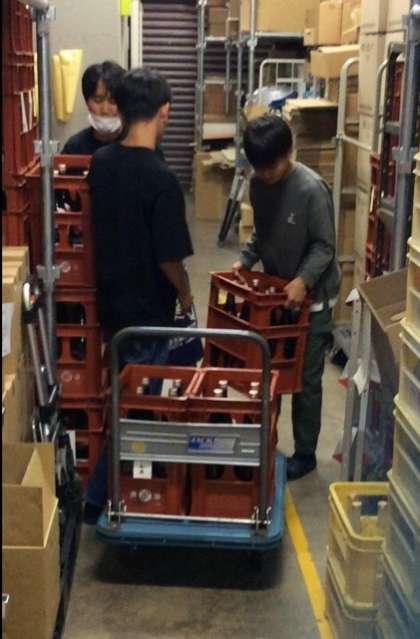 自分たちで箱詰めした商品を運んでいる様子です。