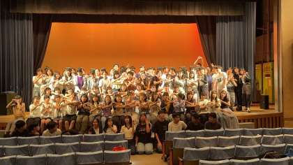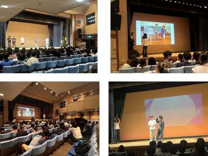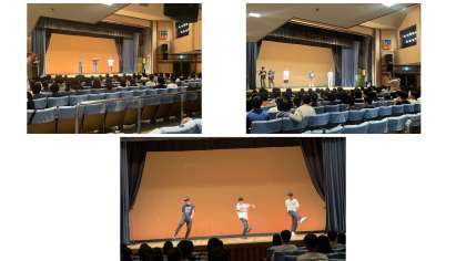 修学旅行1日目の夜のレクレーションの様子です。評議員と保健体育委員が中心となり、企画運営してくれました。