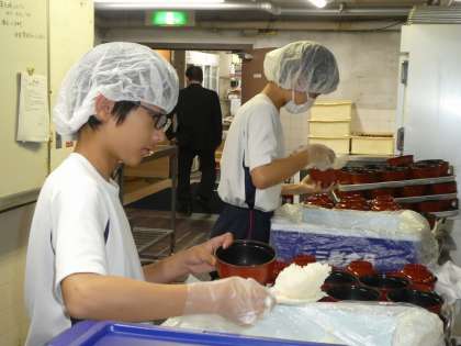団体のお客様の昼食用意をしています。
