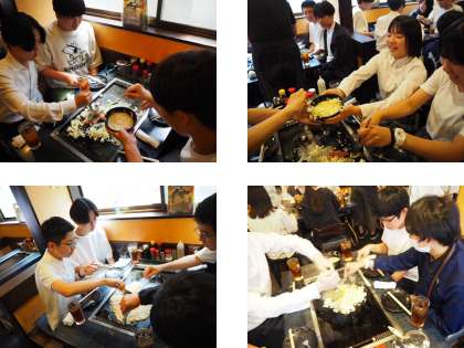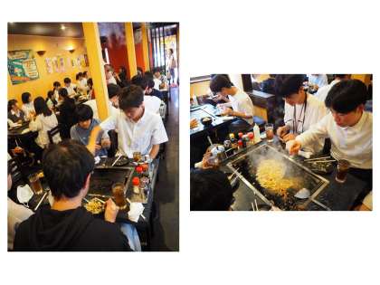 最終日、昼食はもんじゃです。店員さんの指導を受け、自分たちで挑戦しながらいただきました
