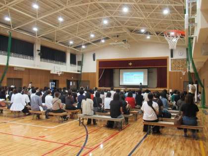 今日の6限は進路講演がありました。桃山高校の先生が講演にきてくださり、公立高校や私立高校の違いなどをお話してくださいました。