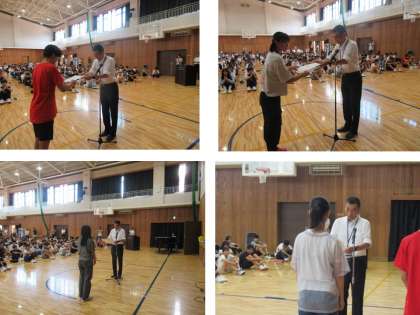 今日は1学期の終業式でした。体育館で行いましたが、例年に比べて、暑さはかなりマシでした。