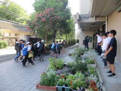 今日から2学期が始まりました。校舎前には生徒会本部の人が、並んで挨拶をしています。2学期の始まりにふさわしい、清々しい始まりですね。みんな元気に登校してきてくれて嬉しいです。
