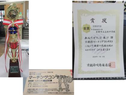 マーチングコンテストは昨年に引き続き、金賞でした♪♪そして京都府代表も獲得しました。本当におめでとう!!よく頑張りましたね♪♪関西大会も頑張ってください!!