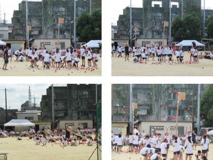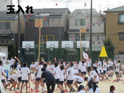 選択種目「玉入れ」です。特に3年生は接戦でした。