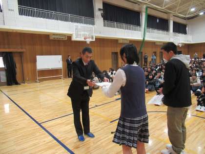 まず水泳の表彰がありました。1年のKさん・3年のYさん