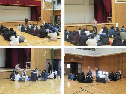 2月14日6限は体育館で公立高校の前期試験の事前指導でした。前期試験は2月17日・18日です。