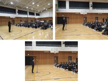 19日は令和6年度の修了式でした。3年生が卒業して1、2年生だけの体育館は広く感じました。