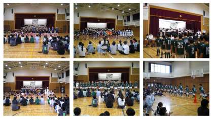 今日は、生徒全員が一堂に会し、学校全体で大会に臨む結団式にもなりうる会となりました。大会に出場しない生徒も、近衛中学校の仲間を心から応援したい、という気持ちもあふれたものでした。