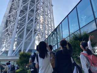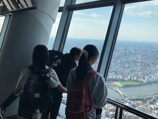 班別研修でスカイツリーに来ました。壮大な景色にテンションも上がりました。