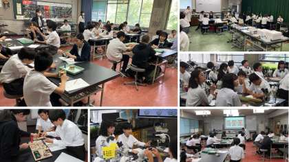 その後、クラスごとに分かれて実験室に移動しました。学習内容はクラスによって違い、どの内容も楽しく意欲的に学習に取り組んでいました。