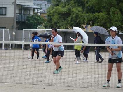 小雨の降る中、気温も低く、地面も滑るようなコンディションでしたが、2年生の各ペアは、日ごろの練習の成果を発揮し、緊張感にも打ち勝ち頑張りました。