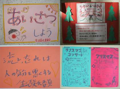 校舎を回っていると,たくさんの手作りポスターに目が留まります。各委員会の活動や生徒会本部,各学年など,色々と工夫されたポスターで,ゆっくり読んでいると楽しいものが多いです。下の写真は少し小さくて見にくいと思いますので,ぜひ校内で実物を探してみて下さい。