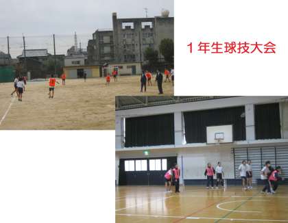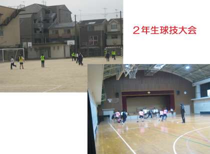 下の写真は,今日の修了式の1コマと16日に行いました1・2年生の球技大会の様子です。