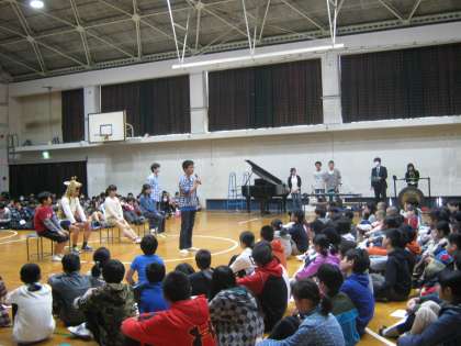 吹奏楽部の演奏で始まった歓迎会は,代表による歓迎の言葉,喜びの言葉に引き続き,生徒会本部企画へと進んでいきました。特に生徒会本部による寸劇仕は,近衛中の生活やルールを本当にわかりやすく,そして面白く伝えてくれたと思います。その後の2・3年生よる歓迎の歌「輝くために」の合唱もきっと1年生の心に響いたのではないでしょうか。近衛音楽祭へ向かう1つの目印となる合唱であったと思います。