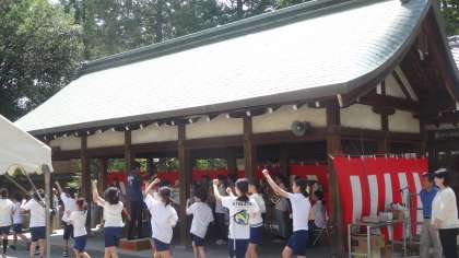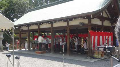 15日に行われた吉田神社の祭礼(HPを見ると氏子講社大祭というそうです)に本校の吹奏楽部が演奏してくれました。