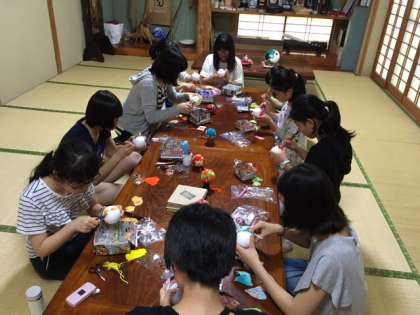 美味しいと喜んで食べていました。その後、田平地区、鹿町小佐々地区の2グループに分かれ、漁業・マリン体験を行なっています。写真は鹿町小佐々地区の繭玉づくりのようすです。ほのぼの喋りながら、楽しんでいます。