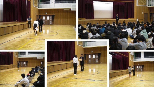 また、生徒指導の先生、生徒会環境委員長からのお話があり、春休みの過ごし方や、これからの自分たちは、次の学年ではこんな生徒、学校になれるといい、など、これからも生徒みんなで成長していこうと思えるお話がありました。