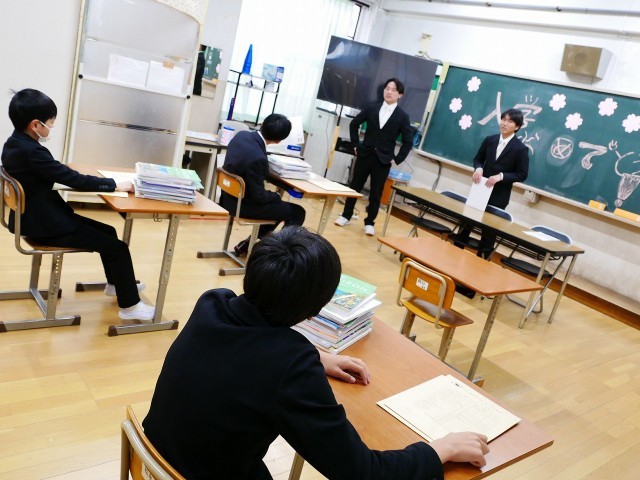 入学式を終えて、教室に戻り学級開きの様子です。