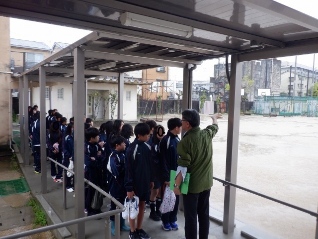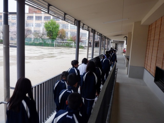 入学・進級し、新しい教室に入りましたので、そこから安全に体育館やグランドに避難経路を確認をしました。