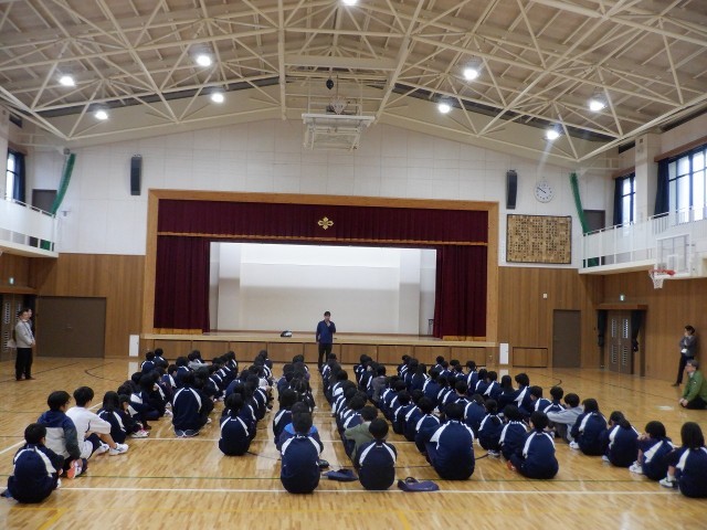全学年がそろった本日は、災害発生時に備え、避難経路を確認する避難訓練を学年ごとに行いました。