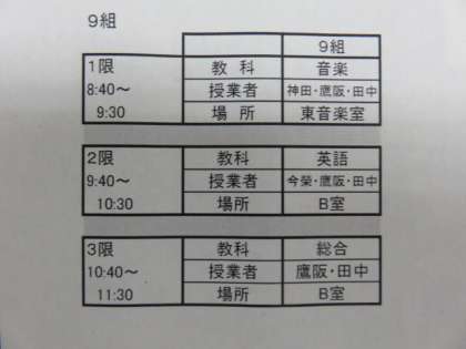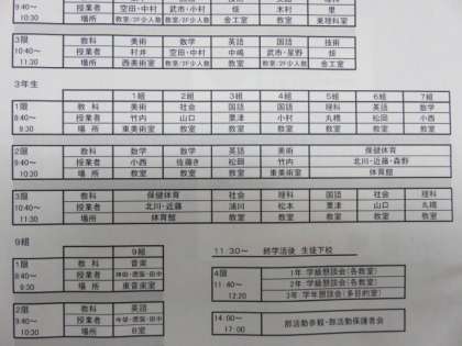 時間割と日程です。