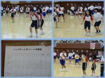 結果は,Aコートは2勝2敗,Bコートは1勝1敗1引き分けでした。レクレーション種目の勝敗はありません。みんなよく頑張りました。お疲れさまでした。