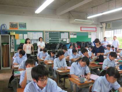 多くの先生が参観される中、しっかり授業に取り組んでいました。