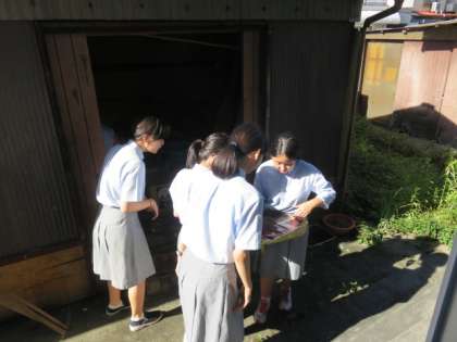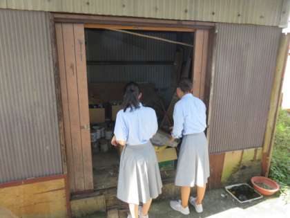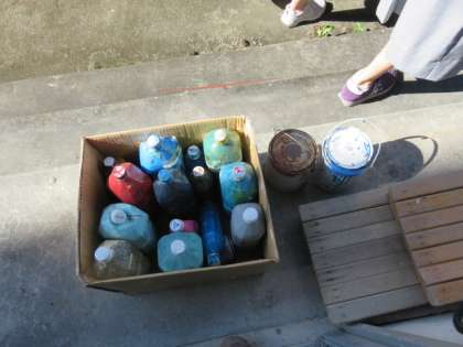 美術部です。夏に行う壁画に使うペンキの確認作業です。