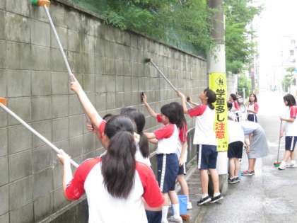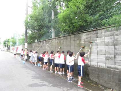 今日は,美術部員総出で,壁をきれいに洗い流しました。