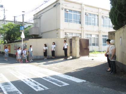 大人のあいさつの声に,生徒たちも元気にあいさつを返していました。