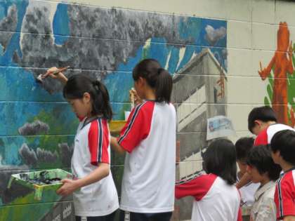 美術部 壁画の作成の様子です。