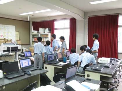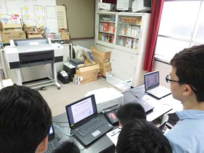 コンピュータ部では,パワーポイントを使って,プレゼンの練習をしています。今日は,それぞれ作成したプレゼンを発表していました。
