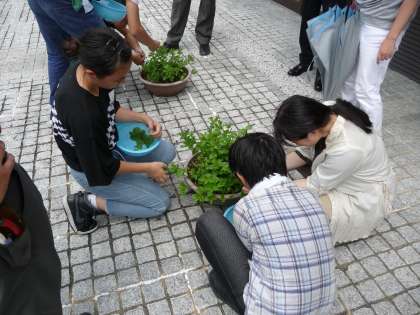 今年度も,武田薬品工業株式会社 京都薬用植物園のご協力により『わくわく自然ふれあい隊』が開催されました。『わくわく自然ふれあい隊』では,詳しい説明を聞きながらの植物園内の見学の後,手摘みのミントを使って各自で作ったミントジュースを味わい,昔ながらの道具[薬研(やげん)]を使った軟膏剤づくりを体験させていただきました。