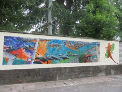 壁画が完成しました。制作に約2週間あまり要しました。今年も大作です。保護者の皆様もお近くに寄られた際には,ぜひご覧ください。