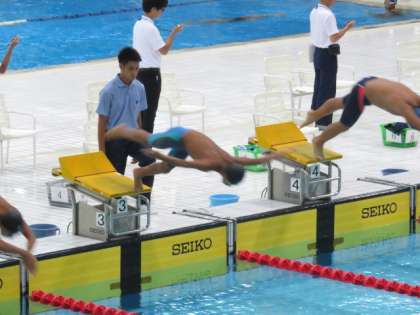 近畿中学校選手権総合体育大会,水泳競技の部が時間を早めて開催されました。