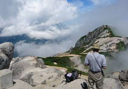 ワンダーフォーゲル部の夏山合宿,燕岳山頂付近の様子です。