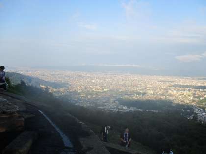 写真は,今朝の大文字山からの風景です。消し炭ひろいに多くの人が登っています。