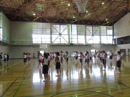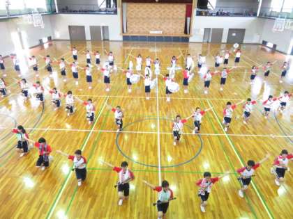 吹奏楽部は,マーチングコンテストに向けて,湖東体育館で練習をしました。