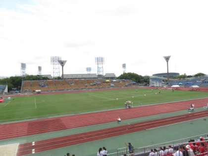 陸上競技のジュニアオリンピック挑戦記録会が,西京極陸上競技場で行われています。