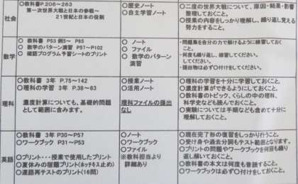 テスト範囲表!…9月24日