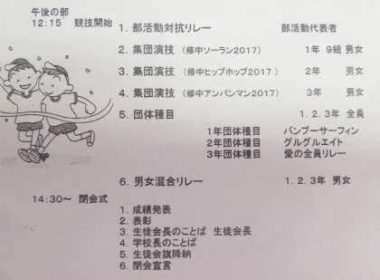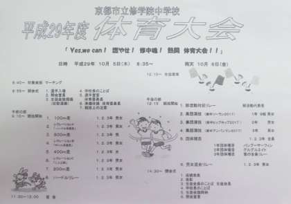 10月5日(木)に実施されます体育大会の日程をご案内させていただきます。皆様のご参観を賜りますようご案内申し上げます。