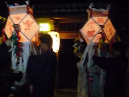 天満宮では,踊り子の汐汲踊りや燈籠着による燈籠廻しなどが奉納され,静寂と漆黒の境内に,燈籠の光と透かし彫りのゆらめきが幻想的な情景を醸し出していました。