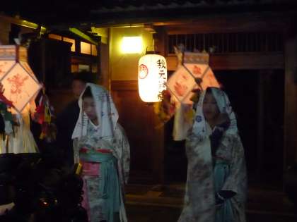 踊り子は,八瀬小学校の女子児童で,燈籠着は,修学院中学校の男子生徒で構成されているそうです。修中生が頑張っていました。