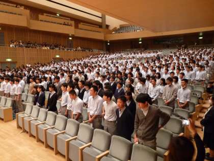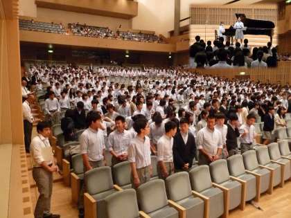 まず最初に全校合唱です。曲は「流れゆく雲を見つめて」です。