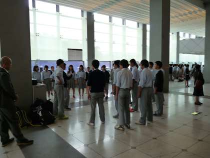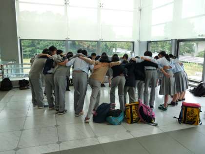 昼食後,午後の部の3年生が最後の練習をしている様子です。円陣を組んで気合を入れているクラスもありました。