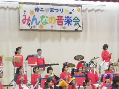 本日,修二の「みんなの音楽会」開催され,修中の吹奏楽部も演奏をしました。