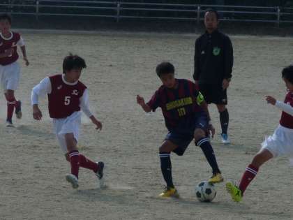サッカー部,秋季新人大会「決勝トーナメント」2回戦が11月4日,大枝中学校で行われました。相手は,京都教育大学付属桃山中学校で,結果は,5対0で快勝しました。