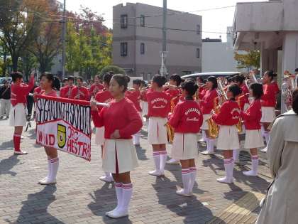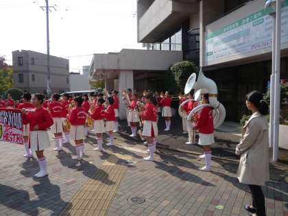 修学院病院前での演奏の様子です。